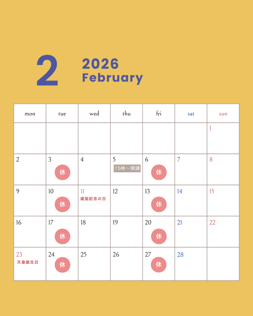 下記の通り、教室休校日をお知らせいたします。